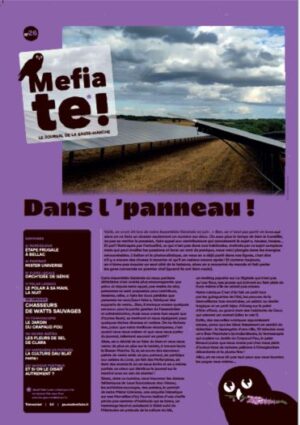 Voilà, on avait dit lors de notre Assemblée Générale en juin : « Bon, on n’veut pas partir en burn out alors on va faire un dossier seulement un numéro sur deux. On aura plus le temps de bien le travailler, ne pas se mettre la pression, faire appel aux contributeurs qui connaissent le sujet », toussa, toussa… Et paf ! Rattrapés par l’actualité, ce qui n’est pas dans nos habitudes, motivés par ce sujet complexe mais qui peut éveiller les passions et lever un vent de panique, nous voici plongés dans les énergies renouvelables. L’éolien et le photovoltaïque, on vous en a déjà parlé dans nos lignes, c’est dire s’il y a encore des choses à raconter et qu’il en restera encore après ! Et comme toujours, on n’aime pas écouter un seul côté de la balance, alors on a rencontré du monde et fait parler les gens concernés en premier chef (quand ils ont bien voulu).