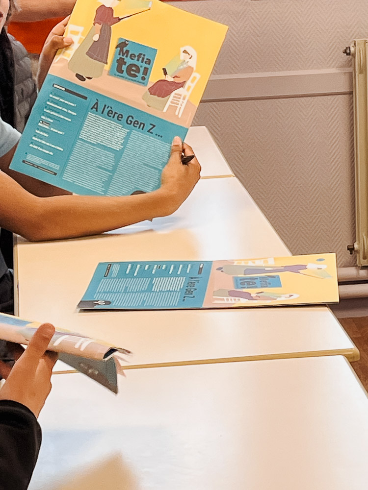 Dans le cadre de la Semaine de la Presse et des Médias, Mefia Te ! était motivé pour discuter avec les adolescent·es et participer ainsi à leur Education aux Médias et à l’Information.